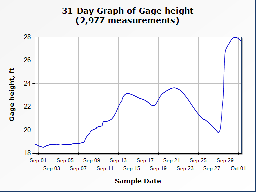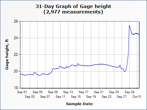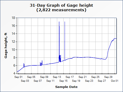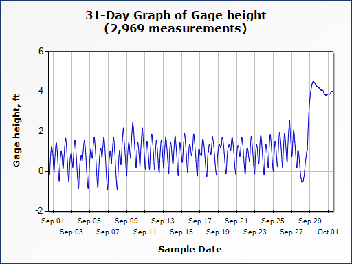 The second graph displays water gauge data after Hurricane Helene but before the anticipated arrival of Hurricane Milton. Important observations include: