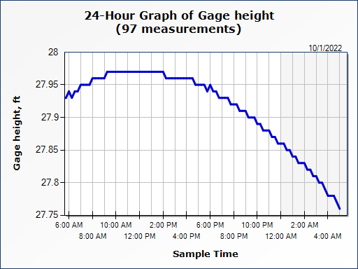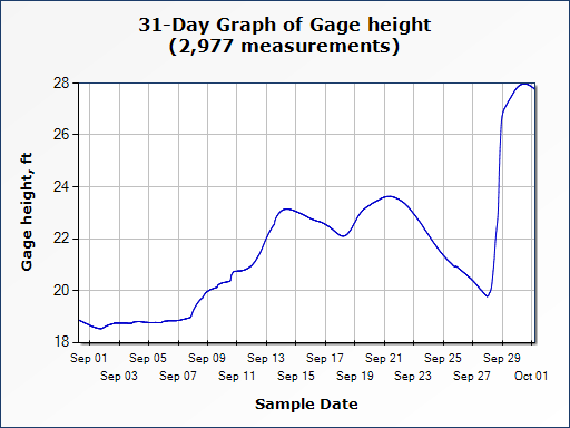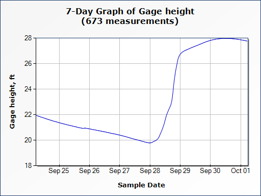The current Gage Height for The Big Slough at Tropicaire Blvd. is 27.76 Ft. The current flow rate is 7760 cfs.